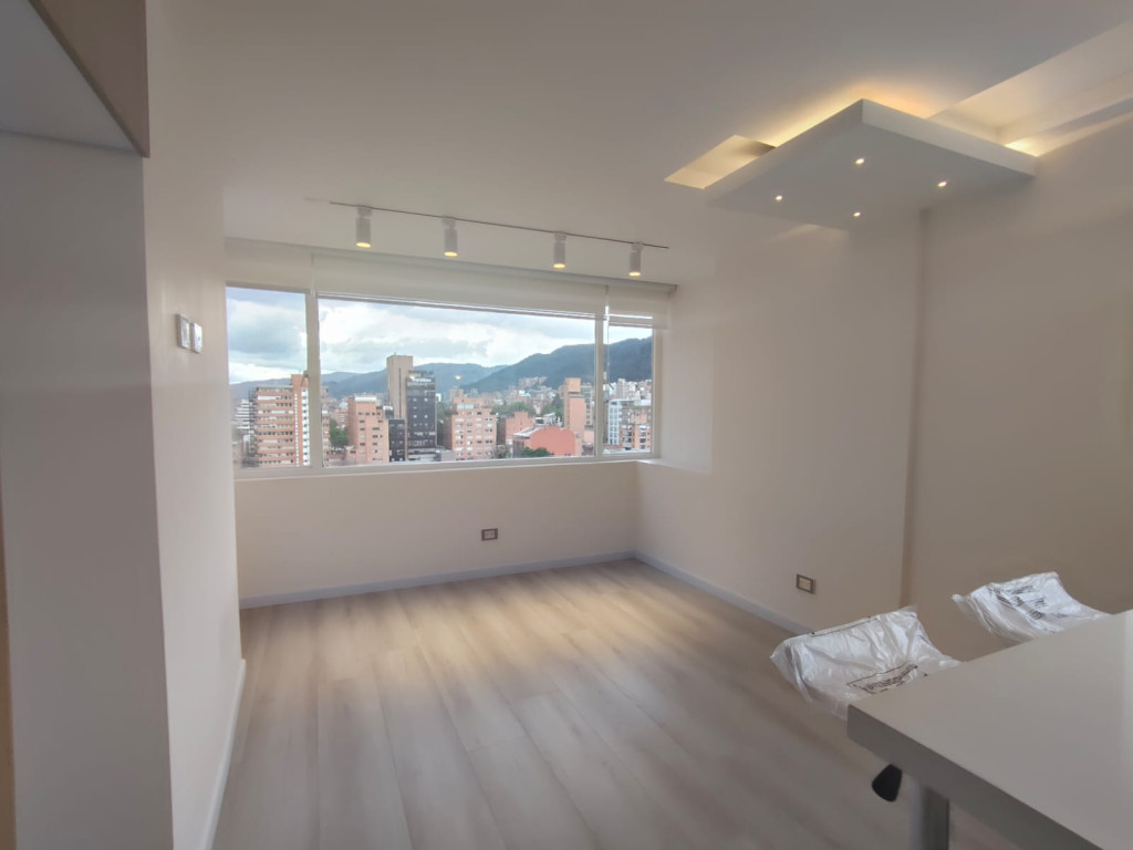 Descubre la elegancia y comodidad en este aparta estudio ubicado en una de las zonas ideal de la ciudad, cerca a centros comerciales, universidades, sector bancario y financiero. Con cómodas vías de acceso y medio de transporte excelente. Con 39 metros cuadrados distribuidos en 1 habitación, 1 baño, sala comedor, cocina abierta tipo americana y zona de lavandería. Este espacio ofrece un ambiente acogedor y funcional para tu día a día. Su diseño moderno y acabados de alta calidad crean un ambiente sofisticado y acogedor, su ubicación en piso 11 ofrece una vista espectacular hacia los cerros orientales.Valor incluido servicios públicos (agua, luz, gas e internet) y administración. SIN PARQUEADERO.