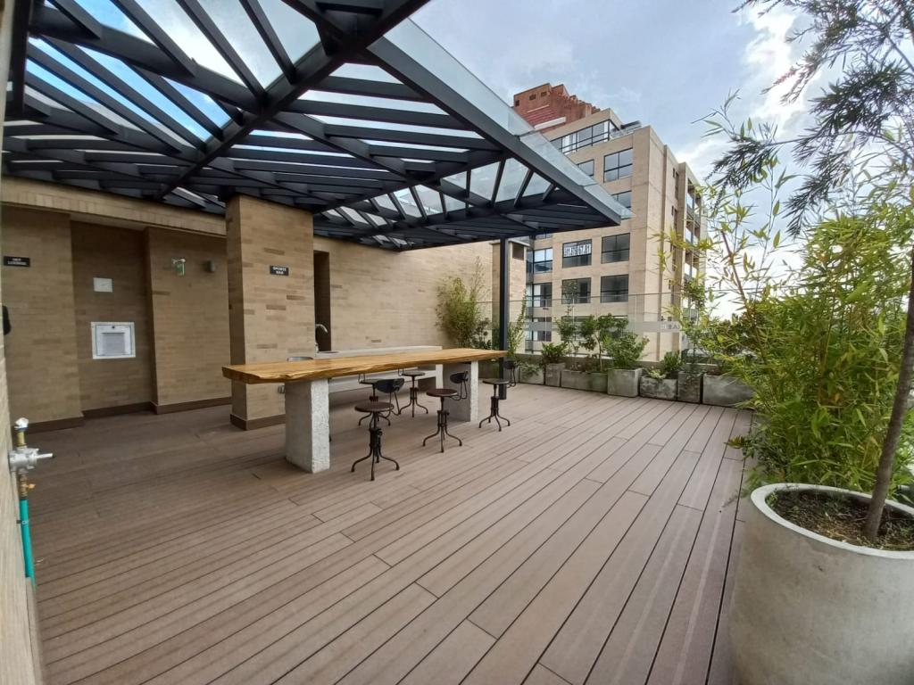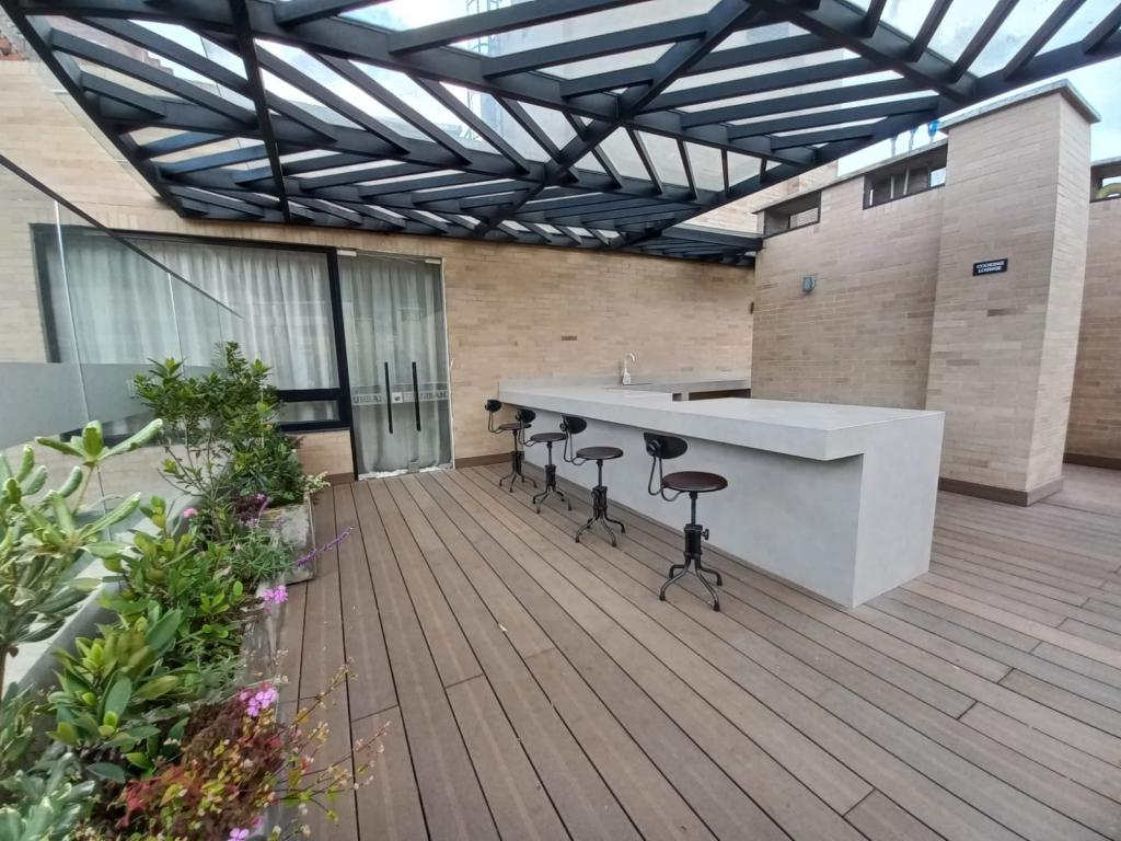 Apartaestudio con acabados modernos, se encuentra muy cerca de la universidad Javeriana. Ubicado en un 6to piso acceso por ascensor. Monoambiente, cocina eléctrica, 1 habitación y 1 baño completo, SIN PARQUEADERO, en el edificio se puede arrendar uno fácil o al frente hay uno. Areas sociales: Lavandería comunal, gimnasio, salón social, terraza y Sky Lounge.
