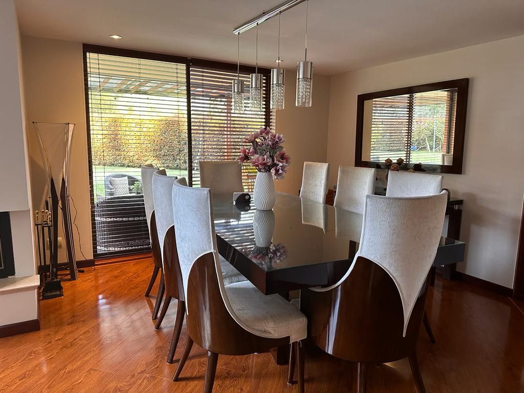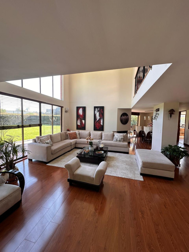 Descubre esta exclusiva casa en conjunto cerrado, ubicada en una zona residencial de fácil acceso y con transporte público cercano. Con 4 habitaciones, 5 baños y 4 parqueaderos, esta propiedad de 311 metros cuadrados ofrece un diseño único en duplex con cocina en L, isla y sala-comedor con chimenea. Disfruta de la iluminación natural, piso de madera laminada y balcón con vista exterior. Además, cuenta con garaje independiente, sala auxiliar, depósito, jardín, cancha de tenis y vigilancia privada las 24 horas.