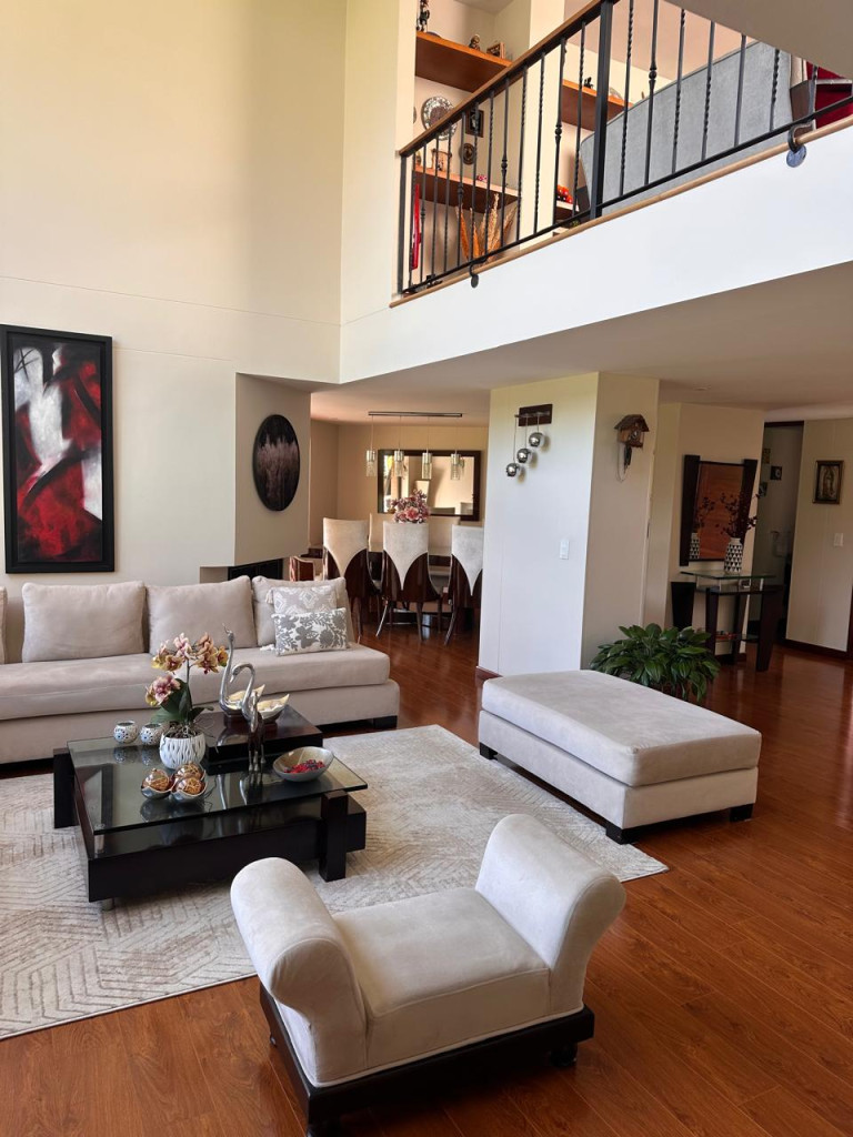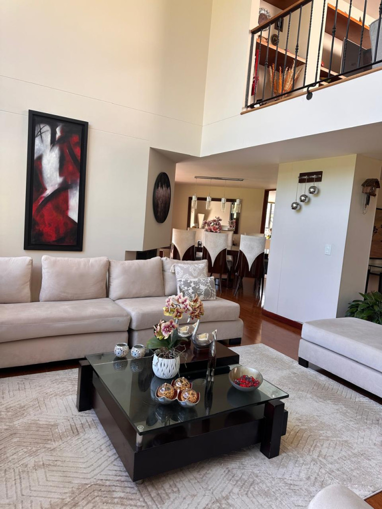 Descubre esta elegante casa duplex en conjunto cerrado, con 4 habitaciones, 5 banos y 4 parqueaderos. Disfruta de una cocina en L con isla, sala-comedor con chimenea, jacuzzi, estudio y balcon con vista exterior. Ademas, cuenta con jardin interior, cancha de tennis, garaje independiente y deposito. Con acabados en madera laminada, iluminacion natural y fachada de ladrillo a la vista. Ubicada en una zona residencial, cerca de parques y transporte publico. ¡Tu nuevo hogar te espera!