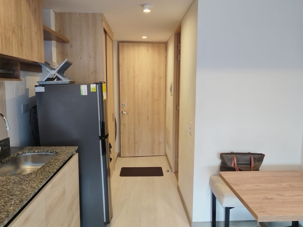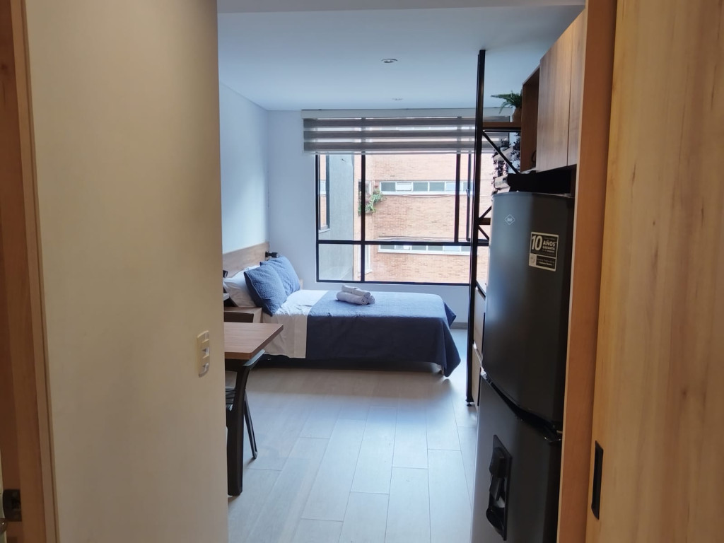 Descubre este acogedor apartaestudio amoblado con cocina eléctrica semi integral y piso de madera laminada. Con un baño independiente y cocina tipo americano, disfrutarás de iluminación natural y un amplio closet. Ubicado en un edificio con acceso para discapacitados, escalera de emergencia y vigilancia privada 24/7. Con ascensor, citófono y cercano a parques, transporte público, supermercados, colegios y zona comercial. Valor negociable ¡Vive la comodidad en esta zona residencial!